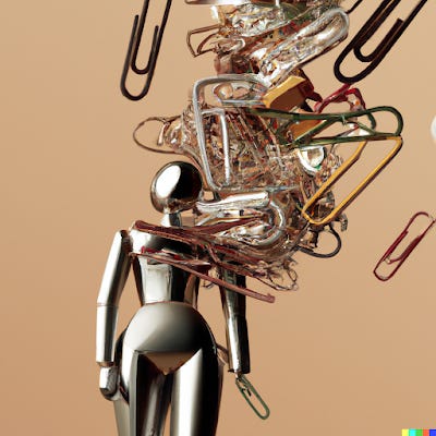 Above: DALL-E illustrating "Artists depiction of an artificial intelligence which builds paperclips, digital art, artstation"