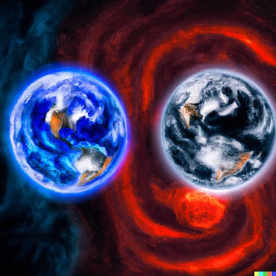 Above: DALL-E's drawing of "Digital art of two earths colliding"